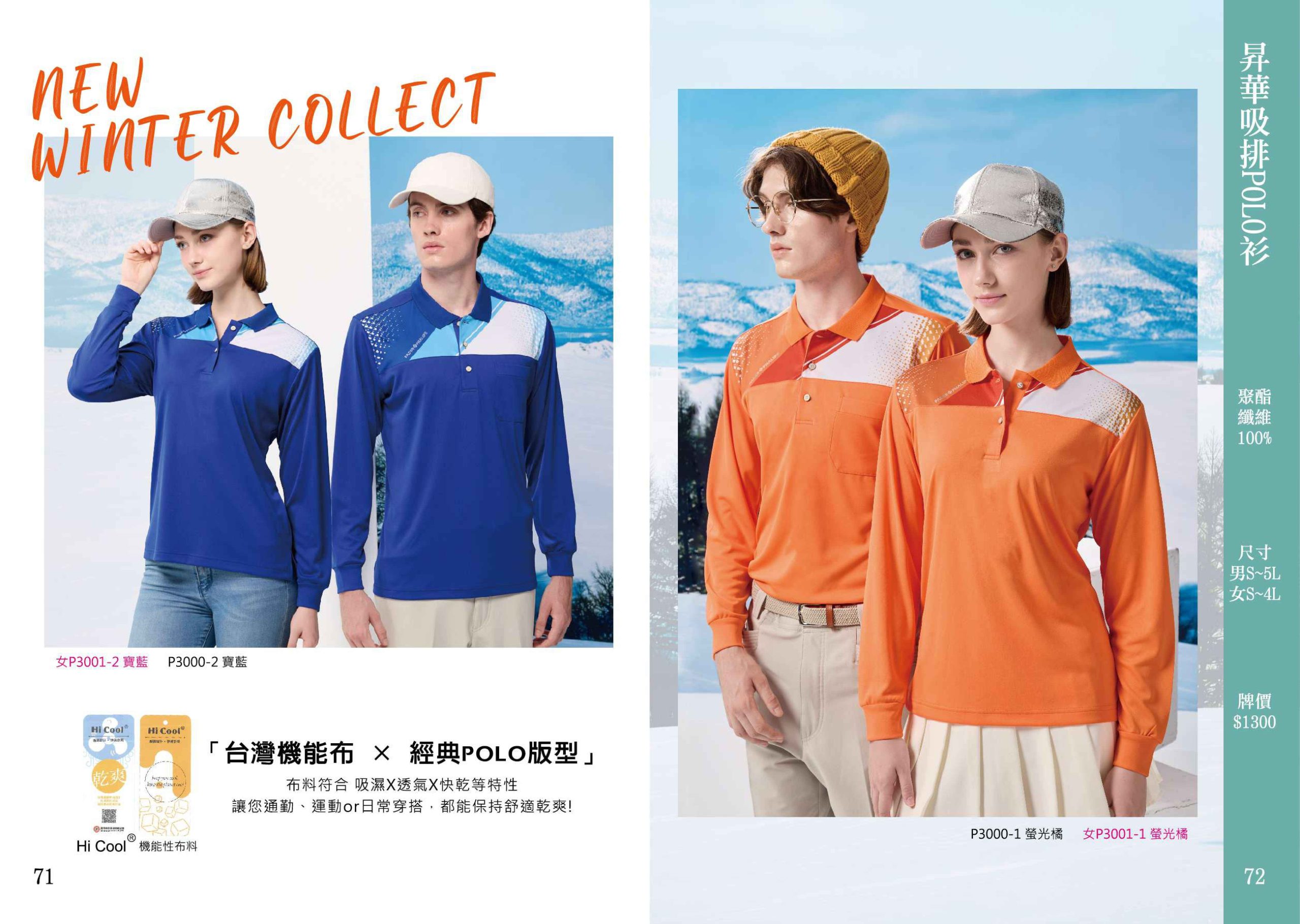 功能性團體服品牌。以吸濕排汗、涼感、抗 UV 等機能布料為核心,提供多色、多版型的 POLO、T 恤與外套系列。款式俐落,結構穩定,適合團服、制服與長時間穿著需求。