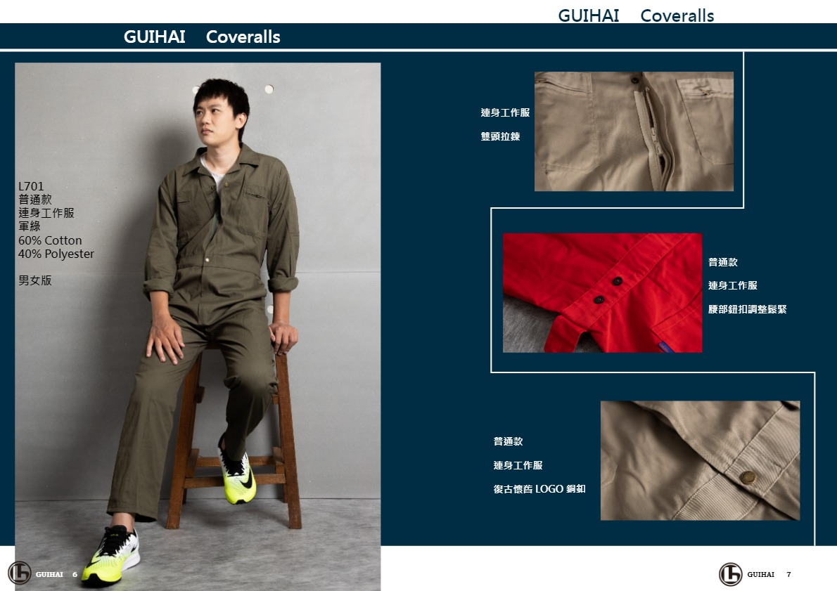 GUIHAI台灣製工作服 GUIHAI提供多樣化的機能工作服系列,特色是布料耐磨、透氣並兼具良好活動度。款式涵蓋戶外、工務、物流與一般作業需求。以實用、好穿、耐洗的核心定位,支援團體訂製與企業制服應用。 訂購方式:加入官方LINE,提供您想詢問的商品型號、數量、顏色及想要印製的圖案。