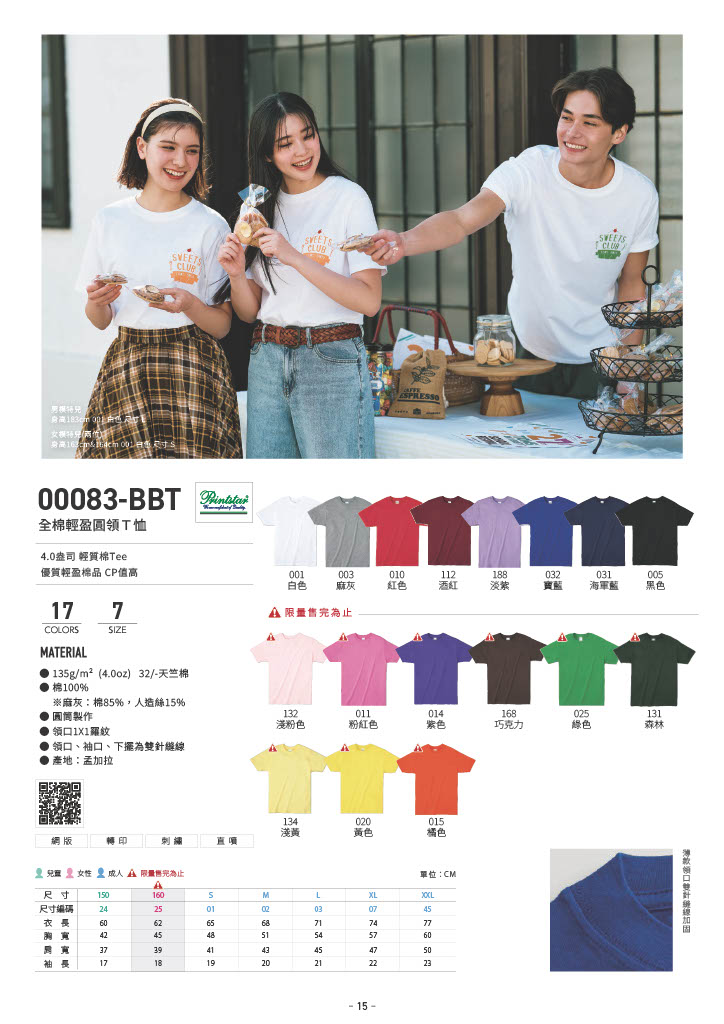 Printstar 專為印製而生 Printstar 為以純棉與基本款服飾聞名的品牌,特色為色系完整、版型穩定、布料手感紮實。其代表商品從經典 5.6oz 棉 T 到多樣厚薄度、尺寸帶的素色服飾,適合作為班服、活動服、企業制服與印刷基底。Printstar 強調耐穿度、版型不易變形、加工友善,長年為團體服領域的定番選擇。團體訂購:10件起訂,可轉印、電繡、印刷。 訂購方式:加入官方LINE,提供您想詢問的商品型號、數量、顏色及想要印製的圖案。