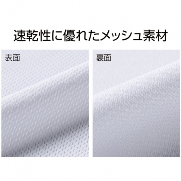 採用 glimmer 吸濕排汗網眼布料150 g/m²(4.4oz),布面輕薄、透氣佳,排汗速度快。