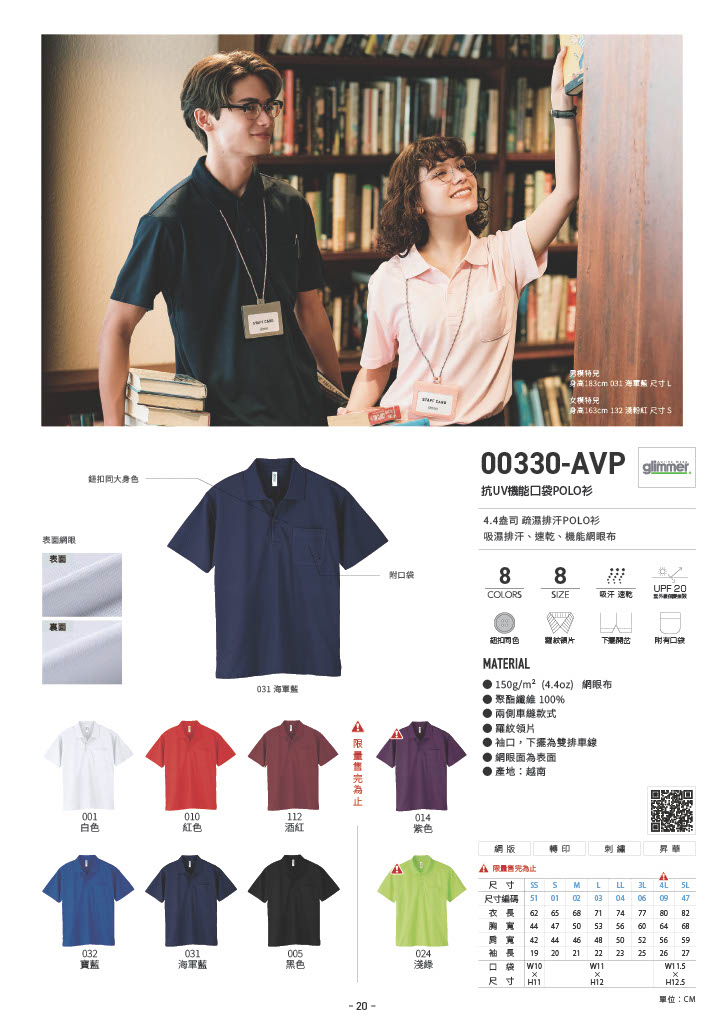 Glimmer 高透氣吸濕排汗短袖 Polo 330-AVP(302口袋版)
