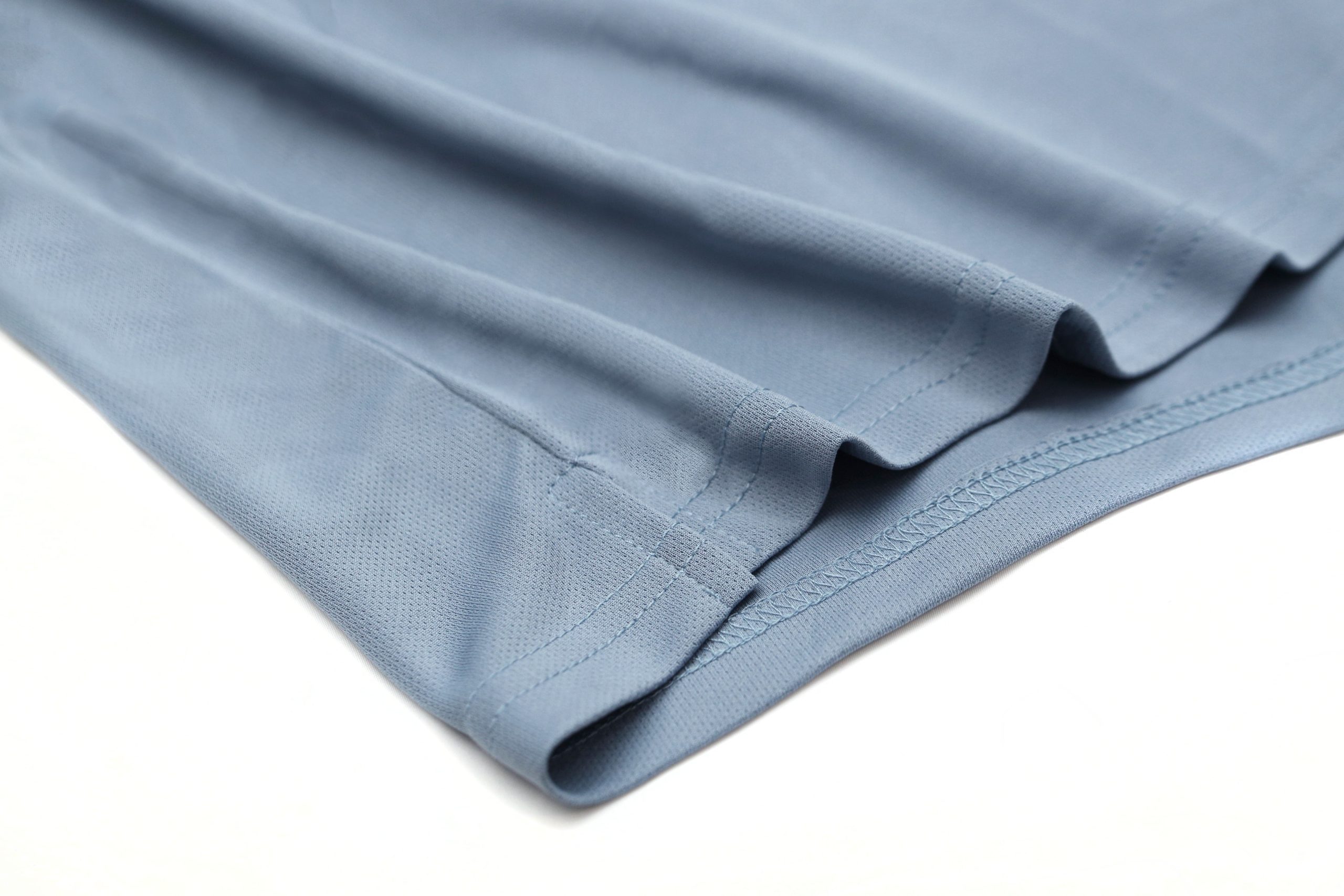 採用 4.4 oz/150 g/m² 高級透氣針點排汗布,100% 聚酯纖維,布面細緻彈性佳、不易勾紗。