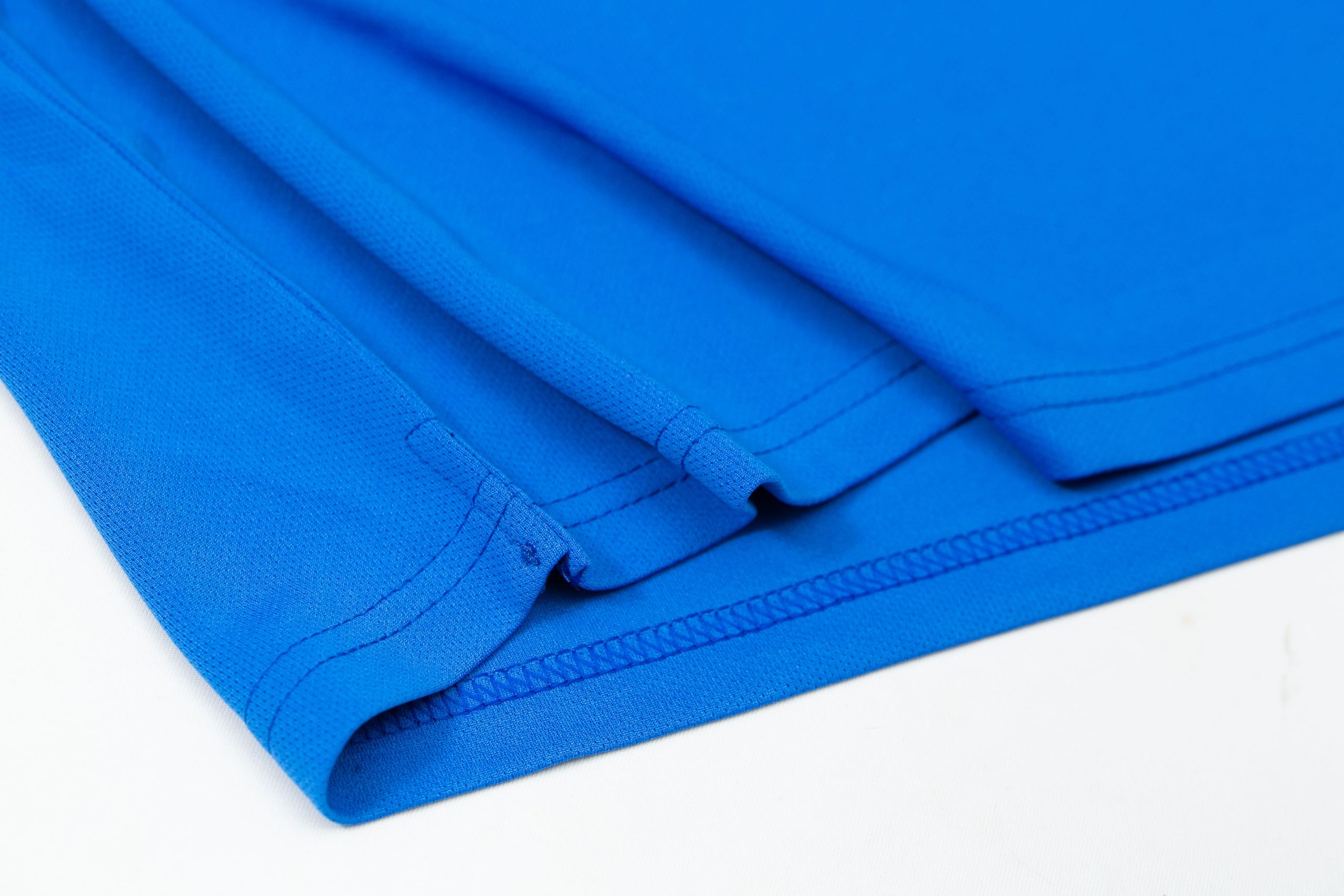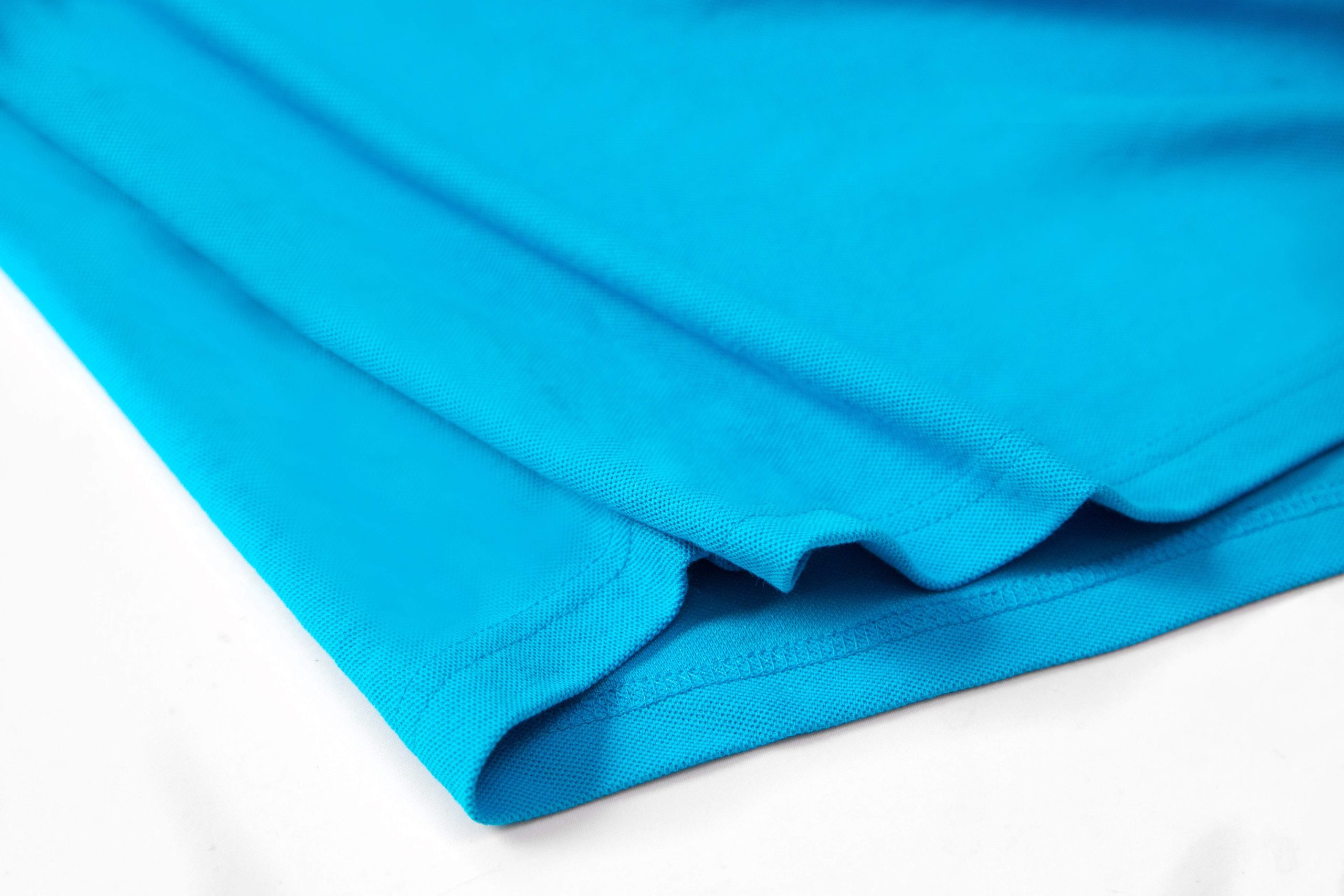 採 4.4 oz/150 g/m² 高級透氣針點排汗布,100% 聚酯纖維,布面細緻富彈性、不易勾紗。