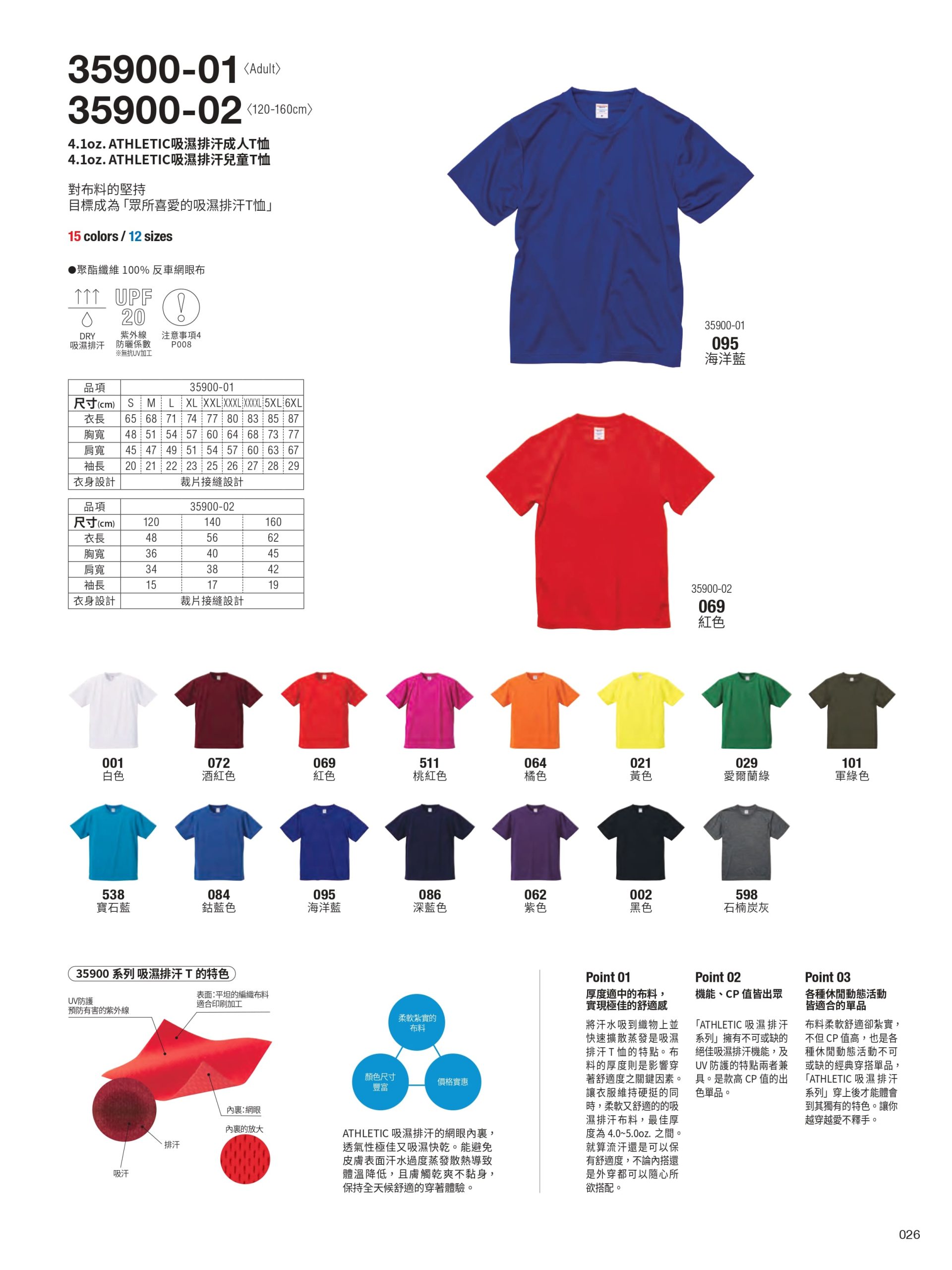 以全棉、T/C 混紡與高機能排汗布料構成,涵蓋從日常基本款到高透氣運動款的完整結構。
